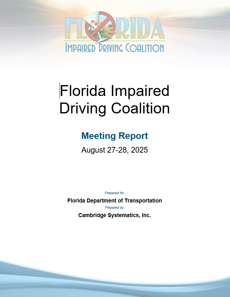 The Florida Impaired Driving Coalition (FIDC) was formed in 2009 to identify and prioritize the state’s most pressing impaired driving issues and develop a plan to maximize the State’s ability to impact these crashes.